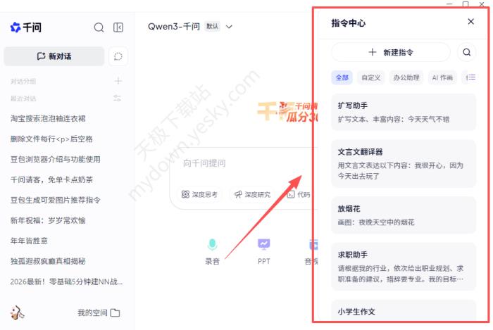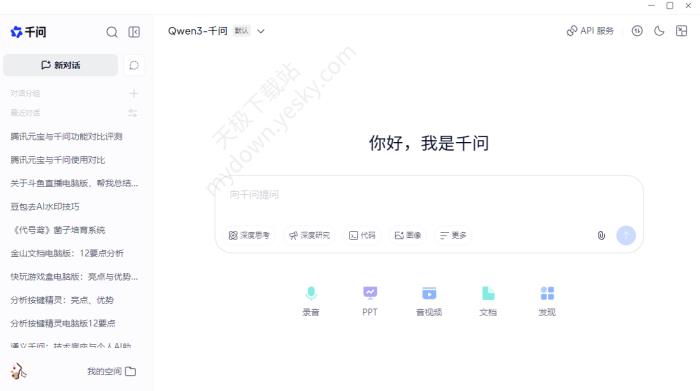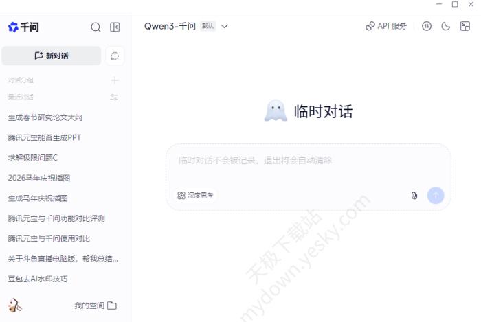腾讯元宝 软件大小: 32.7MB 更新时间: 2026-02-10 15:22:41 所属分类: AI智能对话 前往下载页面 2、千问(2026最新电脑版V2.0.0)