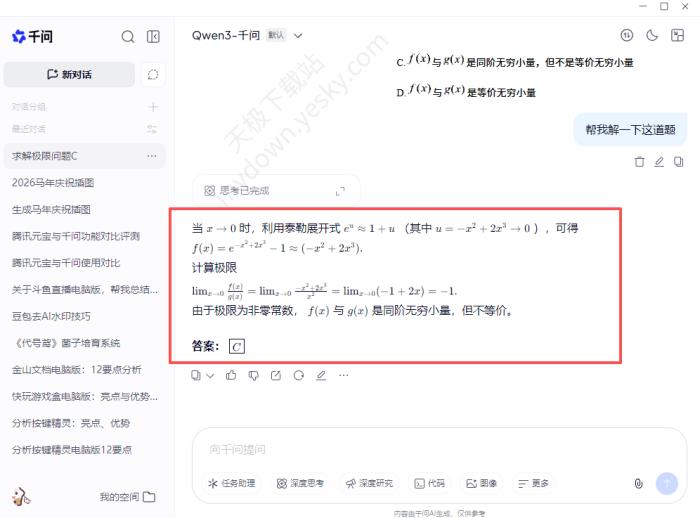 ●千问:仅支持深度思考和上传文件使用。