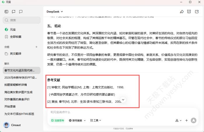 ○参考溯源:生成的文章会在最下方呈现引用的参考文献,方便用户溯源查找。