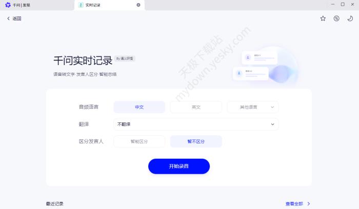●千问实时记录:语音转文字、发言人区分、智能总结。