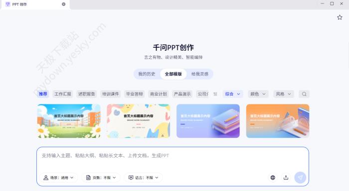 ○智能配套模板:根据用户提供的PPT主题,系统自动生成匹配的模板,确保内容与主题契合。