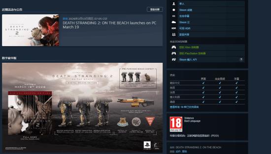 死亡搁浅2冥滩之上PC版上线,Steam商店页无D加密信息