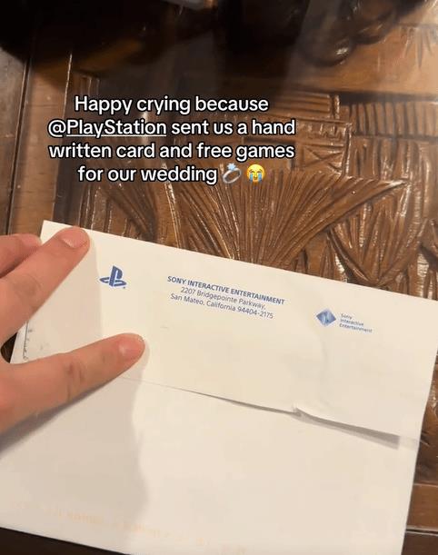 除了游戏,最让人感到暖心的是那张贺卡。卡片上既有手写祝福“新婚快乐!”,也有官方打印的致意文字,新人名字被特别点名,仪式感拉满。新娘 Kirsten 在配文中也难掩兴奋,直言这是一次“非常贴心”的惊喜,并表示自己从小就是 PlayStation 玩家。