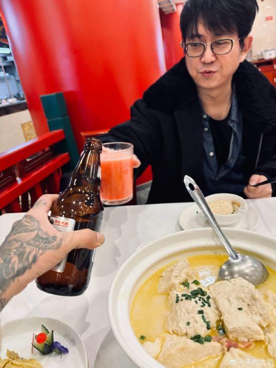 杨奇与艺术大佬共进晚餐,终于摘下口罩的他让人眼前一亮