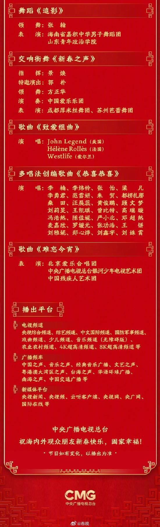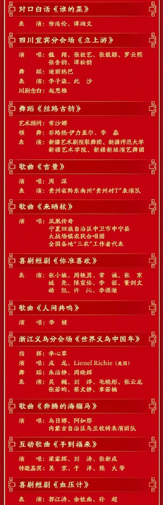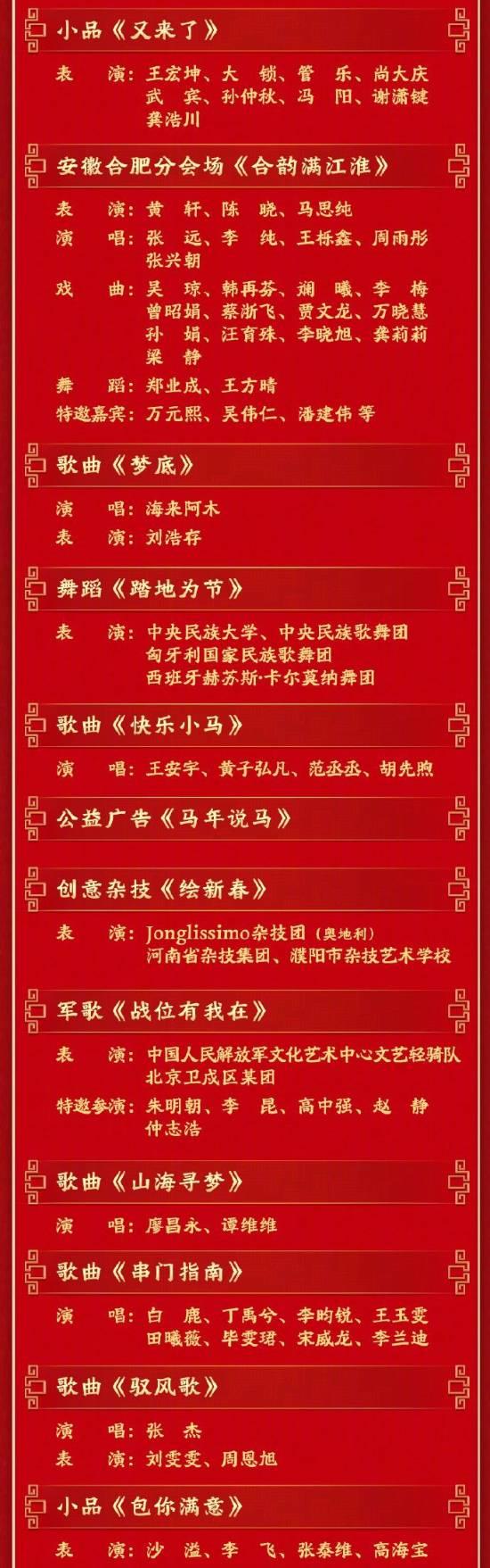 2026年央视春晚节目单已经发布啦,晚会将在今晚8点通过央视综合频道、综艺频道等平台直播,节目丰富多彩,包括歌舞、小品、武术、戏曲等,超过40个精彩节目呢,另外还有黑龙江哈尔滨、浙江义乌、安徽合肥、四川宜宾四个分会场。赶紧准备好瓜子茶水,一起期待吧!