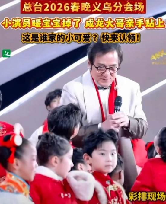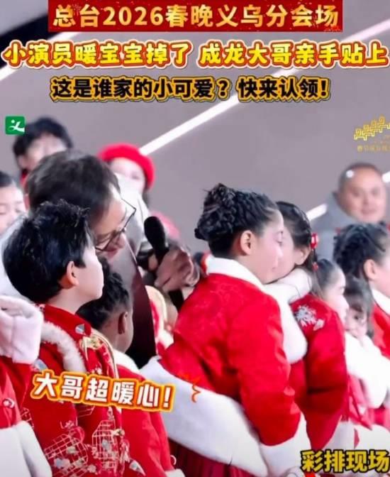 2026年央视春晚义乌分会场彩排时,71岁的成龙看到一名小演员的暖宝宝掉了,便俯身亲自帮忙贴回。这一暖心瞬间被镜头记录,迅速在网上传开,引发热议。