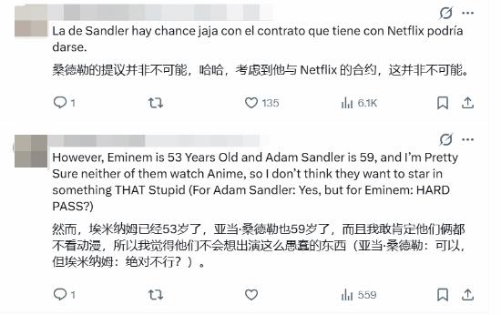 Netflix预算无上限,海贼王下一季的演员阵容让Reddit网友炸了锅。不过,有人提到个现实问题:Eminem都53岁了,亚当・桑德勒59岁,两人平时不太看动漫,估计不会参演。特别是Eminem,拒绝的可能性更大。不过,也有人觉得,亚当・桑德勒跟Netflix合作多年,可能会有机会加入。