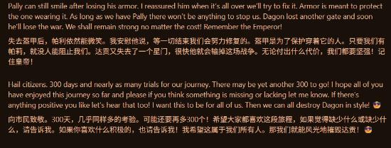 据Scylax_Vitarrn描述,帕利是在某次与魔族大军交战后丢失了头盔。不过这位忠诚的守卫依然面带微笑。“我安慰他说,等一切结束,我们会想办法修好的。”玩家写道,“盔甲本就是为了保护穿戴者。只要我们还有帕利,就没有什么能阻挡我们。大衞又输掉了一座传送门,他很快也会输掉这场战争。”