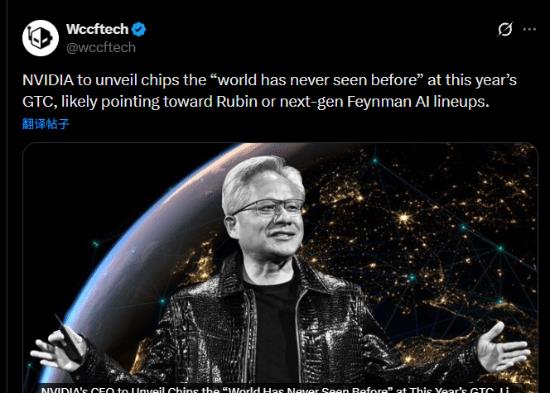 据wccftech报道,NVIDIA的黄仁勋透露,GTC 2026大会上,公司将发布一款全新的芯片产品,他形容这是“这个世界前所未见”的创新。