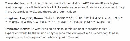 在创下亮眼成绩之后,开发商Embark Studios与母公司Nexon准备与腾讯合作,在Nexon第四季度财报电话会议上,公司CEO透露将推出《ARC Raiders》中国专属版本。