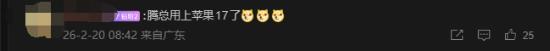 值得注意的是,该条微博显示由iPhone17发布。而上条2月17日发布的微博,使用的手机还是REDMI K90 Pro Max。