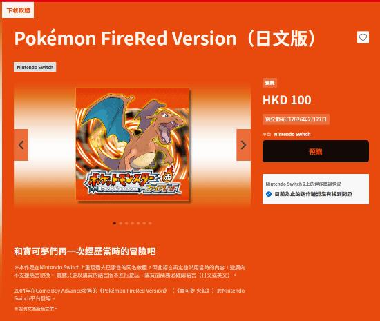 宝可梦火红叶绿突然上架,提供英文日文双版本