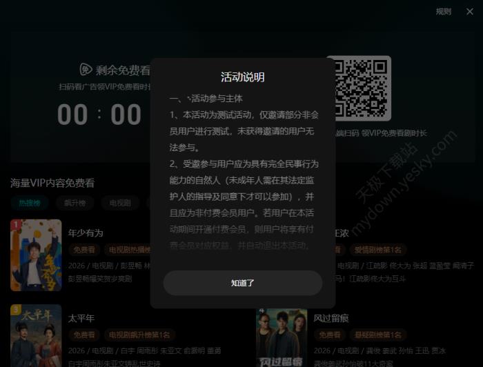 1、本活动为测试活动,仅邀请部分非会员用户进行测试,未获得邀请的用户无法参与。