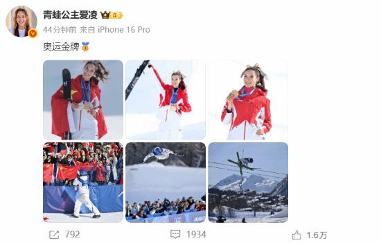 2月23日晚,谷爱凌本人摘金后首次在个人微博发文,还晒了披国旗照。