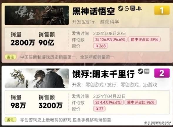 2024年,全球玩家都在关注《黑神话:悟空》时,一款名为《饿殍:明末千里行》(以下简称《饿殍》)的Galgame,以近100万份销量成功拿下国产游戏销量榜亚军。