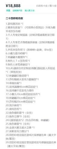 众筹共分为十二个档位,价格从27元到18888元不等,内容除了游戏激活码与感谢名单外,更多都是些色卡、立牌、谷子、布娃娃等各类周边。