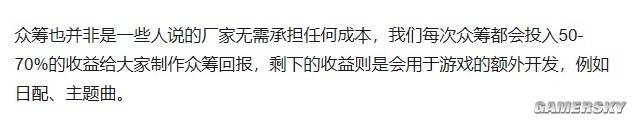 另外,不管是日配还是主题曲,不都是开发商为了开拓市场所要做的投入吗,它又不会影响国内多数玩家的游玩体验,这也要算在众筹里吗?