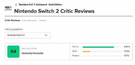 《生化危机7黄金版》的NS2版评价已公布,M站评分达到84分,原生运行表现让人眼前一亮。