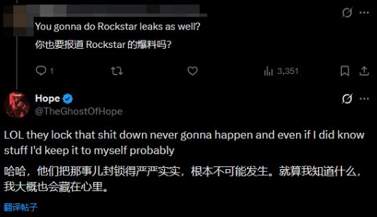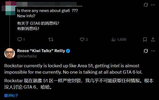 不久之后,另一位可靠消息人士KiwiTalkz(采访过上百位游戏行业从业者)同样提到了此事,并且也是类似的口径:“现在的Rockstar简直就跟51区一样被封得严严实实,想搞到任何内部消息对我来说几乎是不可能的。根本没人能聊《GTA6》,真的,笑死。”