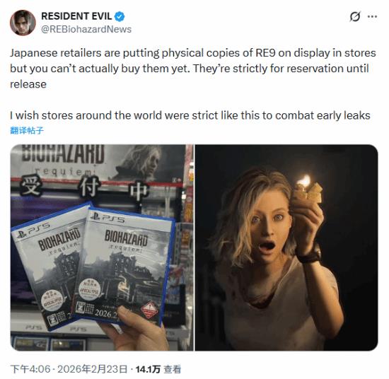 消息发布后,玩家在评论区展开激烈讨论。有日本玩家补充说明,展示用的实体盒内并未包含游戏光盘,从根源上避免了泄露风险;部分海外玩家称赞这种管控模式,认为日本零售商的自律性值得全球借鉴;但也有玩家持质疑态度,指出即便实体版管控严格,游戏内容仍可能通过数字版测试、内部渠道等途径泄露,且此前已有《生化危机 9》相关内容在社交平台流出。