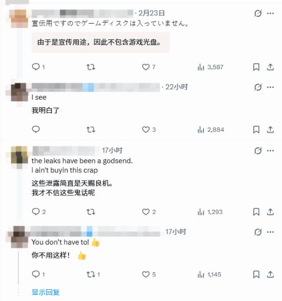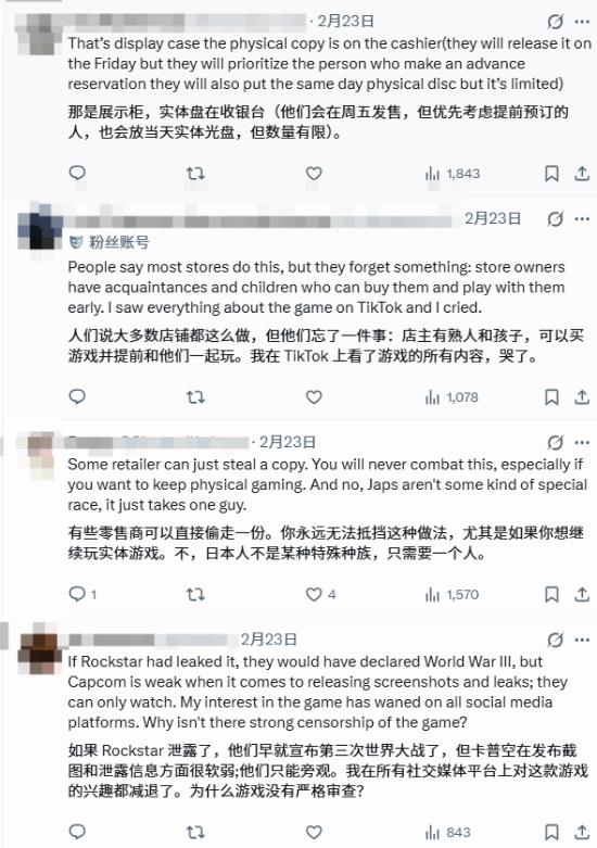此外,还有玩家对比不同厂商的泄露应对策略,认为卡普空在阻止提前截图、内容曝光方面的力度不足,导致部分玩家对游戏的新鲜感下降;也有玩家分享,荷兰等地区曾采用类似的 “仅展示、需预订” 零售模式,但并未完全杜绝泄露问题。