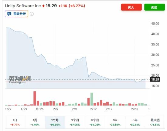 Unity 股价今年以来已下跌逾 60%,几乎抹去此前的涨幅。该股周二盘中一度上涨 6.9%;截至纽约时间下午 1 点 49 分,股价上涨 5.3%,报 18.04 美元,公司市值约为 78 亿美元。