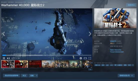 最近,Saber Interactive开发的第三人称射击游戏《战锤40K:星际战士2》在Steam上推出了新史低价,仅需82.17元,这个优惠会持续到3月8日。
