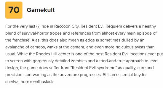 Region Free等媒体吐槽,《生化危机:安魂曲》充满了怀旧情怀和粉丝福利,偶尔穿插一些暴力元素,总体来说是一款有趣的生化危机游戏,但感觉仍然不如其前作。