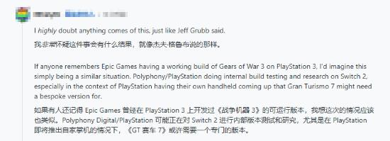 有网友将此事类比当年Epic Games曾在PlayStation 3上运行《战争机器3》,认为这只是厂商对其他主机硬件的常规技术调研。也有观点推测,索尼此举更可能是为自家即将推出的新掌机做技术铺垫,验证《GT赛车7》在移动平台上的运行可行性。