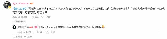 值得注意的是,同为武侠题材的国产动作游戏新星《影之刃零》的制作人“soulframe”竟然现身评论区,介绍称这是《影之刃零》过场动画导演“羊导”羊廷牧5年前的作品,这也让我们得以一览这位动画导演的创作实力,从一个独特的角度粗略认识一下《影之刃零》可能的动画风格。