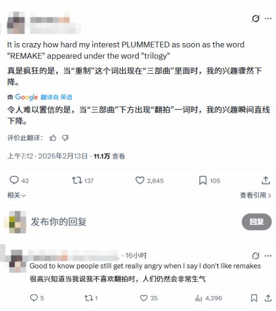 也有海外网友表示,这一公布原本是 “满分全垒打”,直到确认是完全重制而非简单移植到现代主机,期待值瞬间下降。这种反对声音比一般重制消息要多得多。