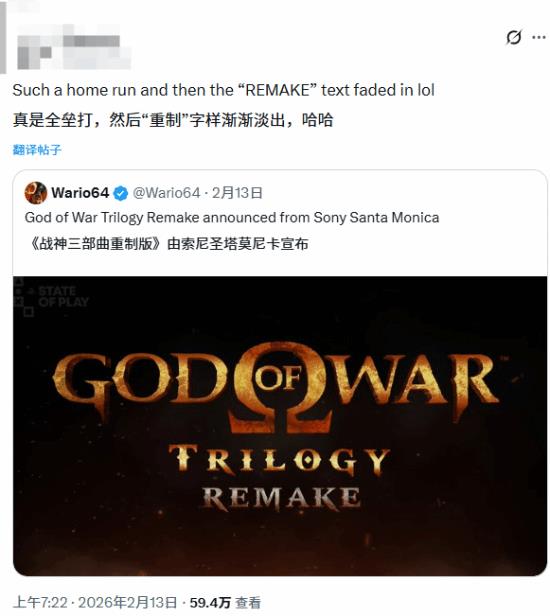 这一消息让大批《战神》粉丝在各大社交平台狂欢庆祝,但也有一部分玩家对此反应冷淡,甚至有人担心重制会删减原作中更具争议与特色的内容。