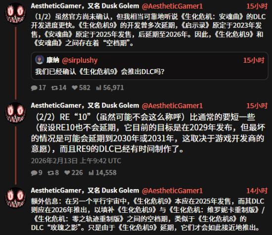 《生化危机9:安魂曲》还没上市呢,已经有小道消息透露《生化危机10》计划在2029年发布,这速度真是快。而且,生化9的DLC也正在紧锣密鼓地开发中。