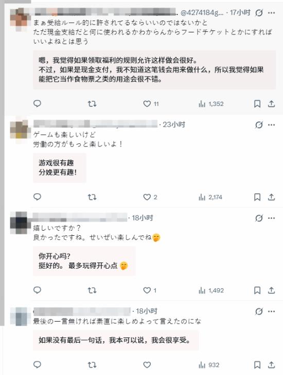 关于日本低保户kanda高调购入NS2的事,评论区的网友们意见不一。有的人怀疑kanda是不是隐瞒了收入或资产,呼吁相关部门要多加监管,但也有人觉得,只要符合领福利的规定,就不该对kanda的消费太苛刻,觉得“用自己的钱买,开心就行”。kanda自己在评论里也回应了网友,表示只是想分享快乐,并没有乱用福利。