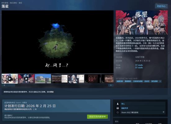 国产美少女后宫游戏落星,Steam过审定档2月25日