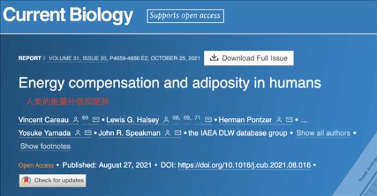 中国科学院研究人员联合国际团队在《当代生物学》(Current Biology)在线发表题为《能量补偿与人类肥胖》的研究论文,提出了一个关键的概念——能量补偿,它或许是导致减肥困难的重要因素之一。