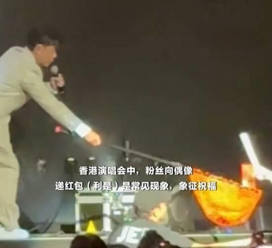 据悉,在粤语地区尤其是香港,粉丝在演唱会等场合向偶像赠送红包(俗称“利是”)是十分常见的现象,这份红包无关金额大小,核心在于传递祝福与心意,象征着平安顺遂、吉祥如意,是粉丝与偶像之间一种充满温度的情感联结方式。张学友、谭咏麟等多位港星开唱时,都曾收到过粉丝递来的“利是”。
