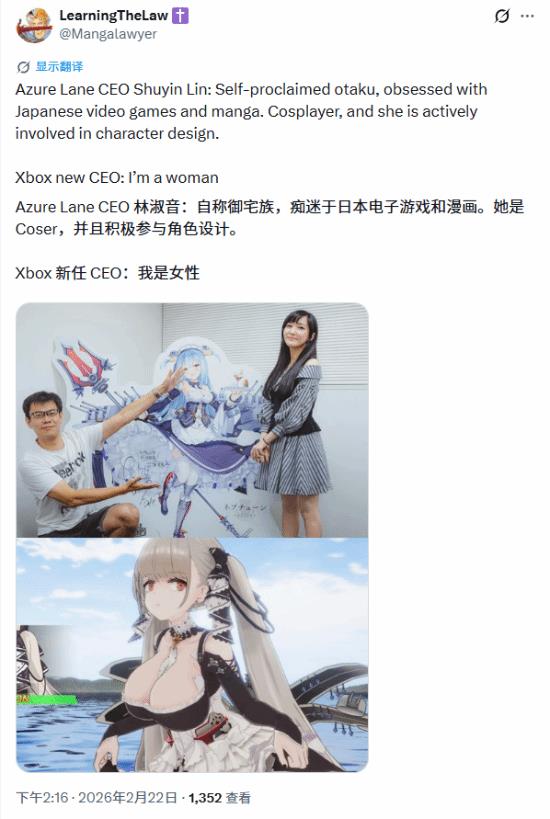 有网友在X上发文,将Xbox的这位新CEO与《碧蓝航线》开发商蛮啾网络的联合创始人林书茵进行对比。该网友表示,同样是游戏业界执掌公司核心位置的女性,林书茵是个不折不扣的御宅族,痴迷ACG;同时也是一位coser,还积极参与角色设计工作。而Xbox的新CEO...,在游戏行业暂时还没有亮眼的相关履历。
