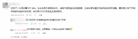 一些评论区网友表示,虽然最终评比略逊一筹,但小米能站上这个舞台,和法拉利保时捷这些顶级超跑同台较量,这就已经是一种胜利了。