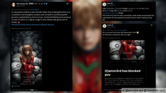 最近游戏圈因为AI生成艺术掀起了一阵风波。《剑星》的总监金亨泰为了祝贺《尼尔》系列的制作人横尾太郎执导《EVA》新项目,发布了一张贺图。图中,《EVA》的明日香站在一堆《尼尔》中的角色“埃米尔”的头颅上,引发了不少争议。