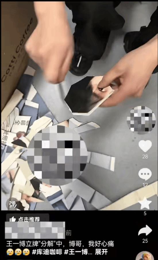 2月27日,库迪咖啡的一家门店员工在处理王一博代言到期的宣传材料时,把他的头像部分剪碎,还拍了短视频发到社交平台,配上了“博哥我下不去手”,“王一博立牌分解中,博哥,我好心痛”等字样。