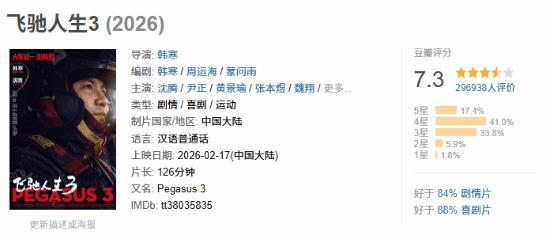 沈腾飞驰人生3豆瓣评分降至7.3,难挡口碑下滑趋势