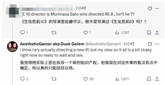 对于 RE10 的导演人选,有玩家猜测曾执导《生化危机 8》的佐藤盛正(Morimasa Sato)将继续担任该作导演。对此,AestheticGamer 回应称,他认为佐藤盛正目前正在开发一个全新的 IP,因此对于 RE10 的导演人选,他的看法仍不确定,需要等待官方进一步消息。