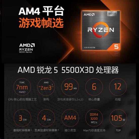 AM4入门游戏神U,锐龙5 5500X3D国内上市,售价1199元