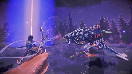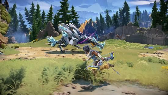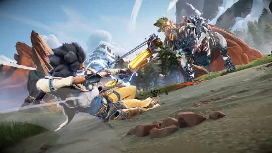 与系列前作不同,《地平线:猎人集结》彻底抛弃了以往的单人写实风格,转向了色彩鲜明、带有卡通质感的艺术风格。在游戏中,玩家将从一组能力各异的“猎人”名单中进行选择,每位猎人都拥有独特的武器、近战或远程战斗风格。
