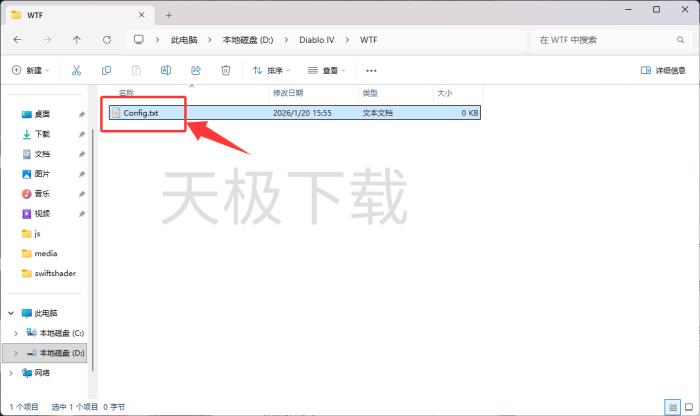 3.在【WTF】文件夹下创建一个名为【Config】的TXT文件。