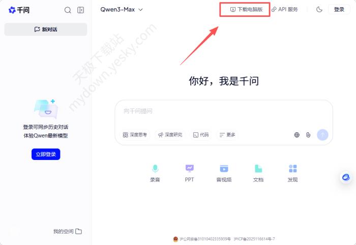 ●方法二:访问【千问官网:https://www.qianwen.com/】的右上角,找到【下载电脑版】,单击就开始下载了。