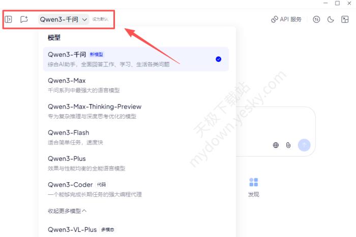 2、在左上角可以【展开侧边栏、开启新对话或者切换千问大模型】。