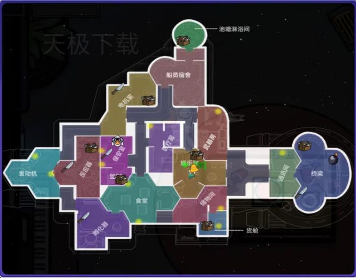 ●娱乐室:拉铃可召集全体玩家开紧急会议,不过每个角色每局只有一次拉铃机会。