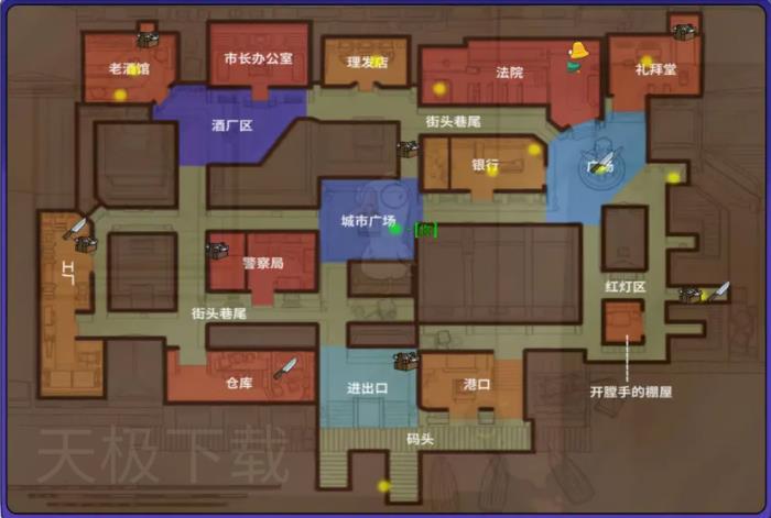 ●桥梁:触发后会引发火灾,若好人未及时完成解除任务,鸭子阵营直接获得胜利,该任务威胁性极高,鸭子可在触发后牵制试图灭火的好人,拖延其解除进度,甚至趁机击杀灭火玩家。